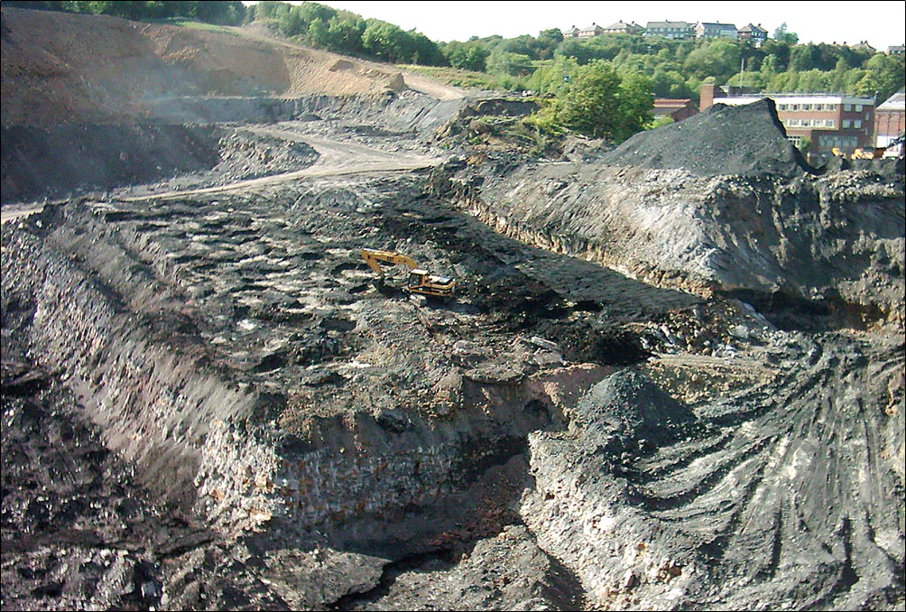 Brymbo’s position, at the foot of the Wales-Brabant High and the southern extremity of the Denbighshire coalfield, results in a geological succession consisting of the lower part of grey coal-bearing beds (Lower and Middle Coal Measures) that pass upwards into barren red beds of the Etruria Formation (Thomas & Seyfullah 2015). The closure of the Brymbo Steel Mill in 1993 was followed with the purchase of the land by Brymbo Developments Ltd with the intent of reclaiming the sub-surface coal in the area to fund future developments on the site. The reclamation works took place from the mid 1990’s through to the mid 2000’s with the site being excavated to over 50ft in depth to reach the Main Coal seam.